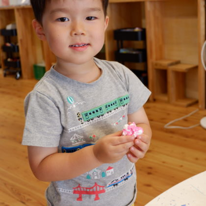 こちらの幼児コースは、紙粘土で作ってみるパフェ。好きな味のアイスを作るべく、その...