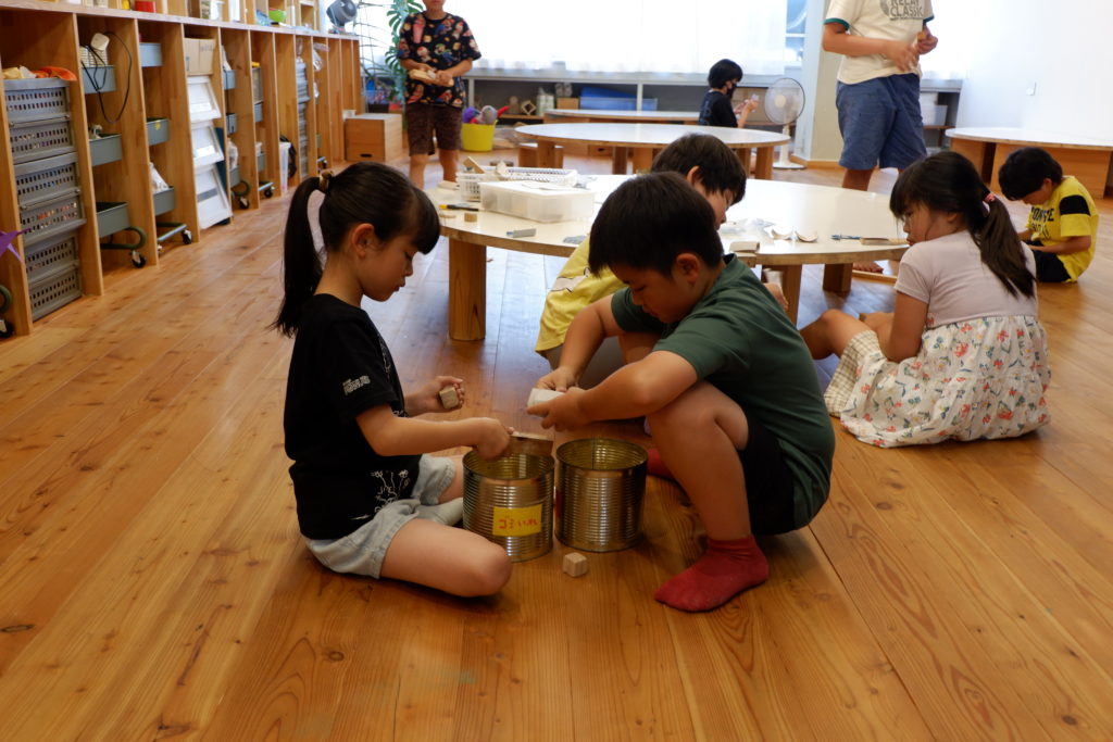 こちらの小学生コースは、木を切って木を磨く。大きな作品ではないけれど、こどもびじゅつ部で地味に人気なこの課題。一度やったことあるのに、またやりたい!とリクエストが多いのもこの課題。